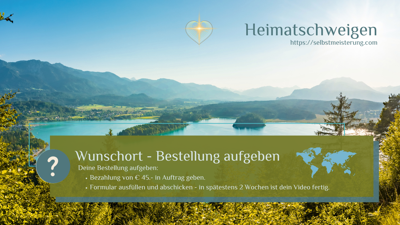 Es gibt die Möglichkeit, 05 Minuten-Schweigevideos für deinen Wunschort zu bestellen, damit dein Ort seinen „energetischen Video-Schutzengel“ schneller zur Verfügung hat.